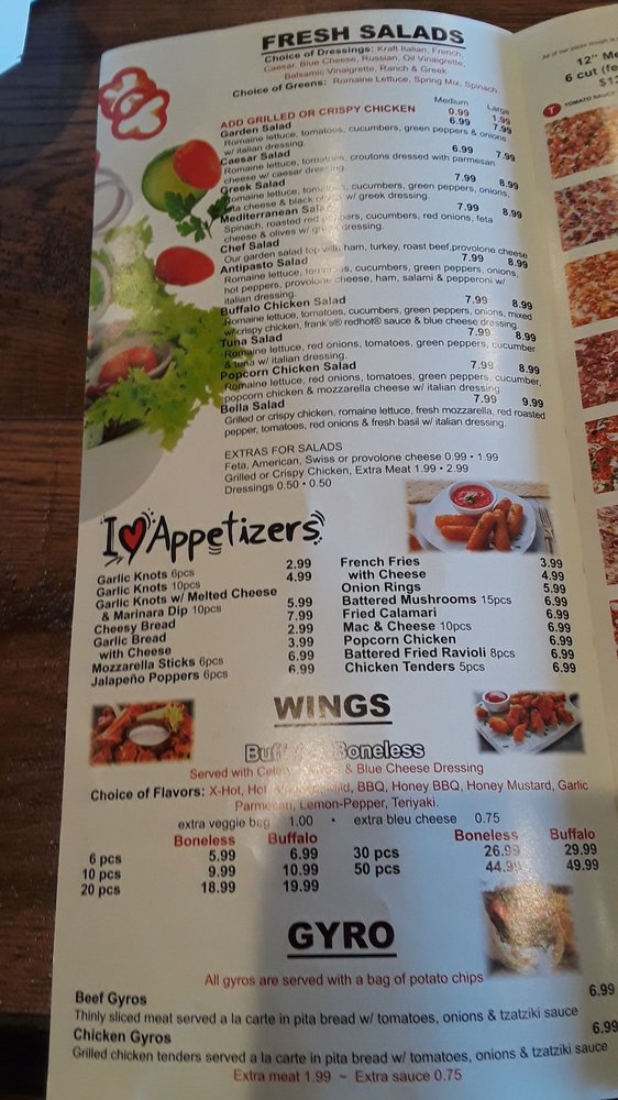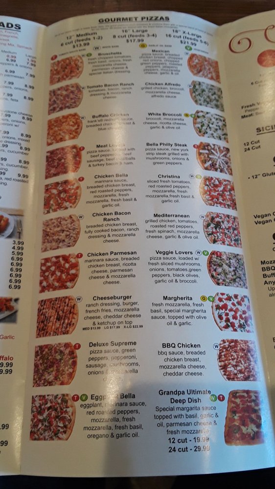 Westgate Pizza Bella Menu