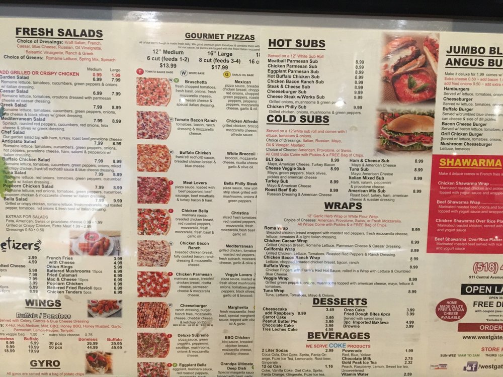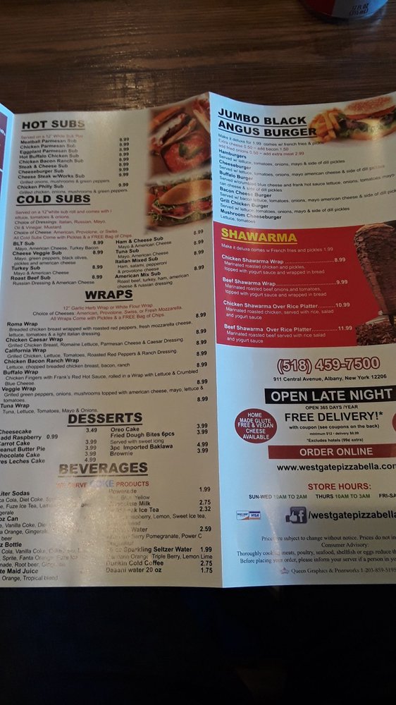 Westgate Pizza Bella, located at 911 Central Ave Albany, NY, is a must-try for salad and pizza lovers seeking Halal options. This casual dining spot offers a range of delicious dishes, from fresh salads to mouth-watering pizzas. The menu caters to various preferences, making it an ideal choice for groups, families, and individuals alike. With convenient utilities like delivery, takeout, and reservations, Westgate Pizza Bella ensures a seamless dining experience. The cozy, quiet ambiance, outdoor seating, and free Wi-Fi add to the overall charm of this establishment. Whether you're looking for a place to have lunch, dinner, or a late-night snack, Westgate Pizza Bella has got you covered. Don't forget to try their specialties and see why this spot stands out among the rest.